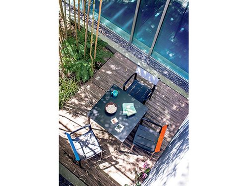 Striped Table di Magis è una collezione di tavoli ideali per interni o outdoor disegnata da Ronan & Erwan Bouroullec. Stile familiare e contemporaneo, leggeri e pratici. La collezione di tavoli Striped conta tre diverse forme, disponibili con struttura in tubo di acciaio verniciato e piano in laminato HPL da 12 mm nero. Grazie ai materiali di alta qualità e alle innovative tecniche di lavorazione, il tavolo resiste all'azione di sole e pioggia, garantendo una lunga durata nel tempo. DIMENSIONI: lunghezza 79cm; larghezza 79cm; altezza 74cm.