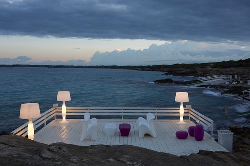 Di proprietà della Kartell, la Lampada Agata da terra, nasce dalla reinterpretazione in chiave moderna, della tradizionale abat-jour, modello iconico dei tempi passati, ma sempre attuale. La sua contemporaneità si attribuisce al materiale plastico in cui è realizzata, e alla progettualità che ne alleggerisce le forme. Altezza: 180 cm Colore: Bianco